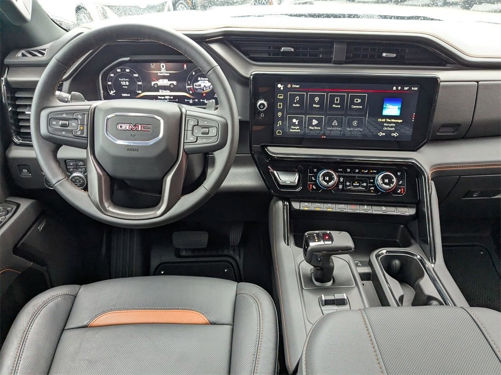 This Sierra 1500 AT4 is nicely equipped with Preferred Equipment Group 4SB (120-Volt Bed Mounted Power Outlet, 120-Volt Interior Power Outlet, 2 Charge/Data USB Ports Inside Center Console, 2 Type-C Charge-Only Rear USB Ports, 2 USB Ports, 220 Amp Alternator, Auto-Locking Rear Differential, Black Chrome Grille Insert Bars, Color-Keyed Carpeting Floor Covering, Deep-Tinted Glass, Electric Rear-Window Defogger, Floor-Mounted Center Console, Front Prem Floor Liners w/Removable Carpet Insert, Front Rain-Sensing Wipers, HD Surround Vision, Heated 2nd Row Outboard Seats, Heated Driver & Front Outboard Passenger Seating, Heavy-Duty Air Filter, Hill Descent Control, Hitch View, In-Vehicle Trailering System App, Integrated Trailer Brake Controller, Keyless Open & Start, LED Cargo Area Lighting, OnStar Services Capable, Perimeter Lighting, Power Door Locks, Power Front Passenger Windows w/Express Up/Down, Power Front Windows w/Driver Express Up/Down, Power Rake & Telescoping Steering Column, Power Rear Windows w/Express Down, Premium Bose 7-Speaker Sound System, Push Button Start, Rear Cross Traffic Braking, Rear Pedestrian Detection, Rear Prem Floor Liners w/Removable Carpet Insert, Rear Wheelhouse Liners, Red Recovery Hooks, Remote Vehicle Starter System, SiriusXM w/360L Trial Subscription, Spray-On Pickup Bedliner w/GMC Logo, Steering Wheel Audio Controls, Theft Deterrent System (Unauthorized Entry), Trailer Camera Provisions, Trailer Side Blind Zone Alert, Ultrasonic Front & Rear Park Assist, Ventilated Driver & Front Passenger Seats, Wi-Fi Hotspot Capable, and Wireless Charging), Trailering Package (Hitch Guidance), Sierra 1500 AT4, GMC Certified Pre-Owned Certified, 4D Crew Cab, EcoTec3 6.2L V8, 10-Speed Automatic, 4WD, Sterling Metallic, Jet Black With Kalahari Accents Leather, 10-Way Power Driver Seat Adjuster w/Lumbar, 10-Way Power Passenger Seat Adjuster w/Lumbar, 170 Amp Alternator, 3.23 Rear Axle Ratio, 4-Wheel Disc Brakes, 7 Speakers, ABS brakes, Air Conditioning, Alloy wheels, AM/FM radio: SiriusXM with 360L, Apple CarPlay/Android Auto, Auto High-beam Headlights, Auto-dimming door mirrors, Auto-dimming Rear-View mirror, Automatic Emergency Braking, Automatic temperature control, Auxiliary External Transmission Oil Cooler, Block heater, Brake assist, Buckle to Drive, Bumpers: body-color, Compass, Delay-off headlights, Driver door bin, Driver Memory, Driver vanity mirror, Dual Active Exhaust, Dual front impact airbags, Dual front side impact airbags, Electronic Stability Control, Emergency communication system: OnStar, External Engine Oil Cooling, Following Distance Indicator, Forward Collision Alert, Front anti-roll bar, Front Bucket Seats, Front Center Armrest, Front dual zone A/C, Front fog lights, Front Pedestrian Braking, Front reading lights, Front wheel independent suspension, Fully automatic headlights, Heated door mirrors, Heated front seats, Heated rear seats, Heated steering wheel, Illuminated entry, IntelliBeam Automatic High Beam On/Off, Lane Keep Assist w/Lane Departure Warning, Low tire pressure warning, Memo
