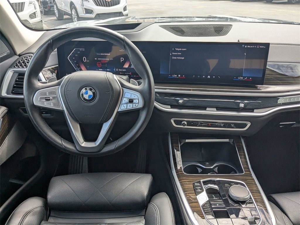 This X7 xDrive40i is nicely equipped with Connected Package Pro, X7 xDrive40i, 4D Sport Utility, 3.0L I6 DOHC 24V, 8-Speed Automatic Sport, AWD, Skyscraper Gray Metallic, Black w/Sensafin Upholstery, 10 Speakers, 3.64 Axle Ratio, 3rd row seats: split-bench, 4-Wheel Disc Brakes, ABS brakes, Adaptive suspension, Air Conditioning, Alloy wheels, AM/FM radio: SiriusXM with 360L, AM/FM Stereo, Apple CarPlay & Android Auto Compatibility, Apple CarPlay Compatibility, Auto High-beam Headlights, Auto tilt-away steering wheel, Auto-dimming door mirrors, Auto-dimming Rear-View mirror, Auto-leveling suspension, Automatic temperature control, BMW Assist eCall, BMW TeleServices, Brake assist, Bumpers: body-color, Compass, ConnectedDrive Services, Delay-off headlights, Driver door bin, Driver vanity mirror, Dual front impact airbags, Dual front side impact airbags, Electronic Stability Control, Emergency communication system: BMW Assist eCall, Exterior Parking Camera Rear, Four wheel independent suspension, Front anti-roll bar, Front Bucket Seats, Front Center Armrest, Front dual zone A/C, Front reading lights, Fully automatic headlights, Garage door transmitter, Genuine wood console insert, Genuine wood dashboard insert, Genuine wood door panel insert, Head restraints memory, Heads-Up Display, Heated door mirrors, Heated front seats, Heated Multi-Contour Seats, Heated steering wheel, Hi-Fi Sound System, Illuminated entry, Knee airbag, Leather steering wheel, Live Cockpit Pro, Low tire pressure warning, Memory seat, Navigation system: BMW Maps Navigation, Occupant sensing airbag, Outside temperature display, Overhead airbag, Panic alarm, Passenger door bin, Passenger vanity mirror, Personal eSIM 5G, Power adjustable front head restraints, Power door mirrors, Power driver seat, Power Front Seats, Power moonroof: Panorama, Power passenger seat, Power steering, Power windows, Radio data system, Rain sensing wipers, Rear air conditioning, Rear anti-roll bar, Rear dual zone A/C, Rear reading lights, Rear seat center armrest, Rear window defroster, Rear window wiper, Reclining 3rd row seat, Remote keyless entry, Security system, Sensafin Upholstery, SiriusXM w/360L & 1 Year Platinum Plan Subscription, Speed control, Speed-sensing steering, Speed-Sensitive Wipers, Split folding rear seat, Spoiler, Sport steering wheel, Steering wheel memory, Steering wheel mounted audio controls, Tachometer, Telescoping steering wheel, Tilt steering wheel, Traction control, Trip computer, Turn signal indicator mirrors, Variably intermittent wipers, Wheels: 21 x 9.5 Y-Spoke Bi-Color, and Wireless Charging Device.