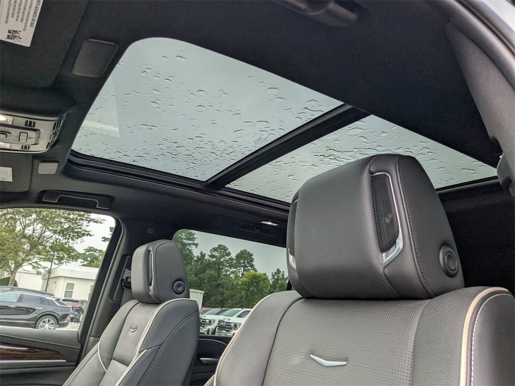 This Escalade ESV Premium is nicely equipped with Performance Package (Electronic Limited-Slip Differential, Hitch Guidance w/Hitch View, Integrated Trailer Brake Controller, Magnetic Ride Control Suspension, Smart Trailer Integration Indicator, and Trailer Side Blind Zone Alert), Preferred Equipment Group 1SB (Adaptive Cruise Control, AKG Studio 19-Speaker Audio System, Automatic Seat Belt Tightening, Door Lock & Latch Shields, Enhanced Automatic Emergency Braking, Enhanced Automatic Parking Assist, Glass Breakage Sensor, Heated & Ventilated Driver & Front Passenger Seats, Lane Change Alert w/Side Blind Zone Alert, Mechanical Limited-Slip Differential, Power Panoramic Tilt-Sliding Sunroof, Rear Camera Mirror, Rear Camera Mirror Washer, Rear Cross Traffic Alert, Reconfigurable Full-Color Head-Up Display, Reverse Automatic Braking, Running Board Assist Steps, Theft-Deterrent Alarm System, Vehicle Inclination Sensor, and Vehicle Interior Movement Sensor), Touring Package (Air Ride Adaptive Suspension, Illuminating Front & Rear Sill Plates, and Soft Closing Front & Rear Doors), Escalade ESV Premium, 4D Sport Utility, 6.2L V8, 10-Speed Automatic, AWD, Argent Silver Metallic, Black Leather, 16.9 Diagonal OLED Infotainment Screen, 19 Speakers, 2-Presets Memory For Driver Seat Adjuster, 2-Way Driver Power Lumbar Seat Adjuster, 2-Way Front Passenger Power Lumbar Seat Adjuster, 3 Years of OnStar & Connected Services Plan, 3.23 Axle Ratio, 3rd row seats: split-bench, 4-Way Power Driver Lumbar Seat Adjuster, 4-Way Power Front Passenger Lumbar Seat Adjuster, 4-Wheel Disc Brakes, 8-Way Power Driver Seat Adjuster, 8-Way Power Front Passenger Seat Adjuster, ABS brakes, Air Conditioning, Alloy wheels, AM/FM radio: SiriusXM with 360L, Apple CarPlay/Android Auto, Audio memory, Auto High-beam Headlights, Auto tilt-away steering wheel, Auto-dimming door mirrors, Automatic temperature control, Brake assist, Bumpers: body-color, Compass, Delay-off headlights, Driver door bin, Driver vanity mirror, Dual front impact airbags, Dual front side impact airbags, Electronic Stability Control, Emergency communication system: OnStar and Cadillac connected services capable, Exterior Parking Camera Rear, Four wheel independent suspension, Front anti-roll bar, Front Bucket Seats, Front Center Armrest w/Storage, Front dual zone A/C, Front reading lights, Fully automatic headlights, Garage door transmitter, HD Radio, Heads-Up Display, Heated door mirrors, Heated Driver & Front Passenger Seats, Heated front seats, Heated rear seats, Heated steering wheel, Illuminated entry, Leather Seating Surfaces w/Mini-Chevron Perf Inserts, Low tire pressure warning, Memory seat, Navigation System, Night Vision, Not Equipped w/2nd Row Express-Up Window Control, Not Equipped w/4-Way Driver & Fr Pass Pwr Lumbar, Not Equipped w/Wheel Locks (LPO), Occupant sensing airbag, Outside temperature display, Overhead airbag, Overhead console, Panic alarm, Passenger door bin, Passenger vanity mirror, Power door mirrors, Power driver seat, Power Liftgate, Power moonroof, Power passenger seat, Power steering, Power windows, Power-Retractable Assist Steps, Premium Smooth Ride Suspension, Radio data system, Radio: AM/FM w/Navigation, Rain sensing wipers, Rear air conditioning, Rear anti-roll bar, Rear reading lights, Rear window defroster, Rear window wiper, Remote keyless entry, Security system, SiriusXM w/360L, Speed control, Split folding rear seat, Spoiler, Steering wheel memory, Steering wheel mounted audio controls, Super Cruise, Tachometer, Teen Driver, Telescoping steering wheel, Tilt steering wheel, Traction control, Trip computer, Turn signal indicator mirrors, Variabl