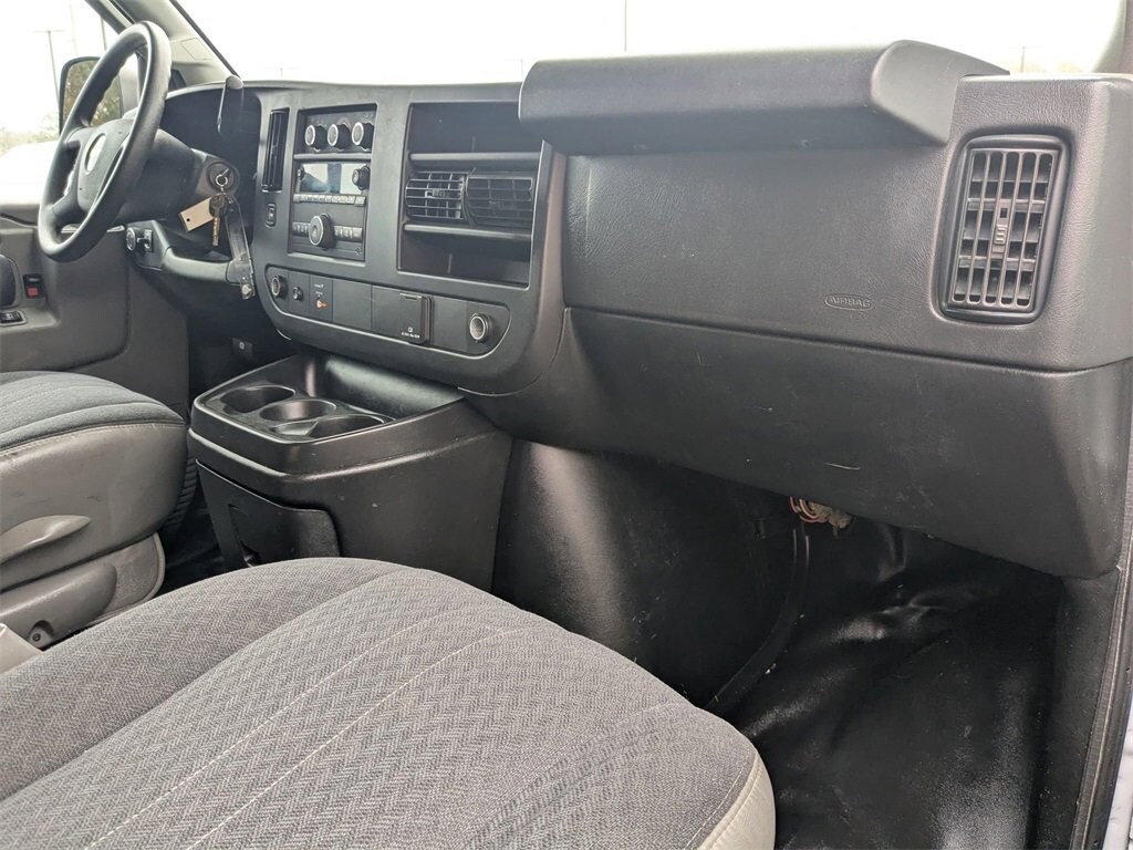 This Express 2500 Work Van is nicely equipped with Chrome Appearance Package (Chrome Grille and Front & Rear Chrome Bumpers w/Step-Pad), Driver Convenience Package (Cruise Control and Tilt Steering Wheel), Preferred Equipment Group 1WT, Express 2500 Work Van Cargo, 3D Cargo Van, Vortec 6.0L V8 SFI Flex Fuel, 6-Speed Automatic HD with Electronic Overdrive, RWD, Summit White, Jet Black/Medium Dark Pewter Cloth, 16 x 6.5 Steel Wheels, 2 Speakers, 3.42 Rear Axle Ratio, 4-Wheel Disc Brakes, ABS brakes, Air Conditioning, AM/FM radio, AM/FM Stereo w/MP3 Player, Black Rubberized-Vinyl Front Only Floor Covering, Delay-off headlights, Driver & Front Passenger High-Back Bucket Seats, Driver door bin, Driver's Seat Mounted Armrest, Dual front impact airbags, Dual front side impact airbags, Electronic Stability Control, Emergency communication system, Engine Cover Console w/Swing-Out Storage Bin, Exterior Parking Camera Rear, Fixed Rear Door Window Glass, Fixed Rear Side Door Window Glass, Front anti-roll bar, Front Bucket Seats, Front Reclining High-Back Bucket Seats, Front wheel independent suspension, Full-Length Black Rubberized-Vinyl Floor Covering, Fully automatic headlights, Heavy-Duty Rear Locking Differential, Low tire pressure warning, Occupant sensing airbag, Overhead airbag, Passenger cancellable airbag, Passenger door bin, Passenger seat mounted armrest, Power steering, Power windows, Rear & Side Cargo Door Glass, Rear Side Door Glass Window Security Bar, Reclining Front Bucket Seats w/Inboard Armrests, Seat-Mounted & Roof-Rail Side-Impact Airbags, Single-Zone Manual Air Conditioning, Sliding Passenger-Side Door, Tachometer, Traction control, Trip computer, Variably intermittent wipers, Vinyl Seat Trim, and Voltmeter.