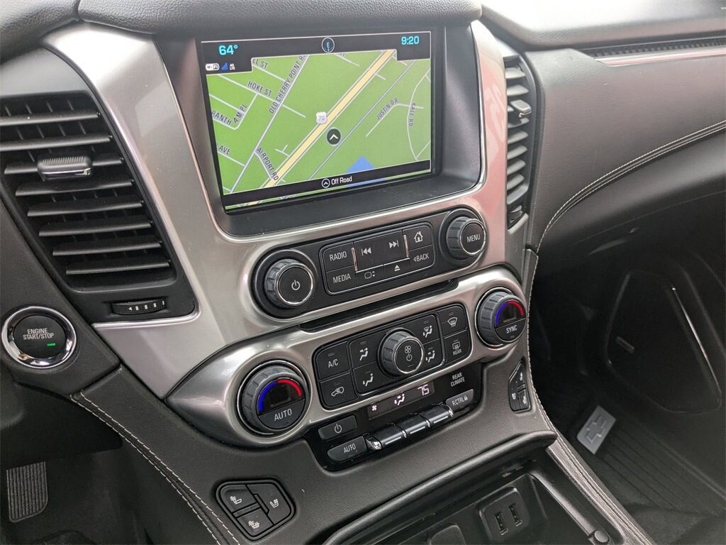 This Tahoe Premier is nicely equipped with Enhanced Driver Alert Package (Y86) (Automatic Emergency Braking, Forward Collision Alert, IntelliBeam Headlamps, and Lane Keep Assist w/Lane Departure Warning), License Plate Front Mounting Package, Magnetic Ride Control Suspension Package, Preferred Equipment Group 1LZ (1st & 2nd Row Color-Keyed Carpeted Floor Mats, 3rd Row 60/40 Power Fold Split-Bench, 4-Wheel Antilock Disc Brakes w/Brake Assist, 5 12-Volt Auxiliary Power Outlets, Auto-Dimming Inside Rear-View Mirror, Black Assist Steps w/Chrome Accent Strip, Bose Centerpoint Premium 10-Speaker Surround Sound, Cargo Net, Color-Keyed Carpeting Floor Covering, Driver Inboard & Front Passenger Airbags, Electronic Cruise Control w/Set & Resume Speed, Floor Console, Fog Lamps, Front & Rear Park Assist, Front Passenger 6-Way Power Seat Adjuster, Hands Free Power Liftgate, Heated & Ventilated Driver & Front Passenger Seats, Heated 2nd Row Outboard Seats, Heated Leather Wrapped Steering Wheel, Lane Change Alert w/Side Blind Zone Alert, Memory Settings, Passive Entry System, Power Release 2nd Row Bucket Seats, Power Tilt & Telescopic Steering Column, Power-Adjustable Accelerator & Brake Pedals, Power-Folding Heated Outside Mirrors, Push Button Keyless Start, Rear Cross Traffic Alert, Remote Keyless Entry, Remote Vehicle Start, Roof-Mounted Luggage Rack Side Rails, SiriusXM NavTraffic, SiriusXM Radio, Universal Home Remote, and Wireless Charging), Premier Plus Edition (170 Amp Alternator, 22 6-Spoke Split Chrome (LPO) Wheels, Black Roof Rack Cross Rails, Collapsible Cargo Area Organizer (LPO), Enhanced Driver Information Center, Head-Up Display, Integrated Trailer Brake Controller, Polished Exhaust Tip, Power-Retractable Assist Steps, and Wheels: 22 x 9 Steel), Sun, Entertainment & Destinations Package (Power Sunroof and Rear Seat Blu-Ray/DVD Entertainment System), Tahoe Premier, 4D Sport Utility, EcoTec3 6.2L V8, 10-Speed Automatic with Overdrive, RWD, Black, Jet Black/Mahogany Leather, 10 Speakers, 3rd row seats: split-bench, 4-Wheel Disc Brakes, ABS brakes, Adaptive suspension, Adjustable pedals, Advanced Adaptive Cruise Control, Air Conditioning, Alloy wheels, AM/FM radio: SiriusXM, Apple CarPlay/Android Auto, Auto High-beam Headlights, Auto-dimming door mirrors, Auto-dimming Rear-View mirror, Auto-leveling suspension, Automatic Emergency Braking (UGN), Automatic temperature control, Bluetooth for Phone, Bodyside moldings, Brake assist, Bumpers: body-color, CD player, Compass, Delay-off headlights, Driver door bin, Driver vanity mirror, Dual front impact airbags, Dual front side impact airbags, Electronic Stability Control, Emergency communication system: OnStar and Chevrolet connected services capable, Exterior Parking Camera Rear, Front anti-roll bar, Front Bucket Seats, Front Center Armrest, Front dual zone A/C, Front fog lights, Front Heated Reclining Bucket Seats, Front reading lights, Front wheel independent suspension, Fully automatic headlights, Garage door transmitter, HD Radio, Heated door mirrors, Heated front seats, Heated rear seats, Heated steering wheel, High-Intensity Discharge Headlights, Illuminated entry, Leather steering wheel, Low tire pressure warning, Memory seat, Navigation System, Occupant sensing airbag, Outside temperature display, Overhead airbag, Overhead console, Panic alarm, Passenger door bin, Passenger vanity mirror, Pedal memory, Perforated Leather-Appointed Seat Trim, Power door mirrors, Power driver seat, Power Liftgate, Power passenger seat, Power steering, Power windows, Premium audio system: Chevrolet MyLink, Radio: Chevrolet Infotainment AM/FM Stereo w/Nav,