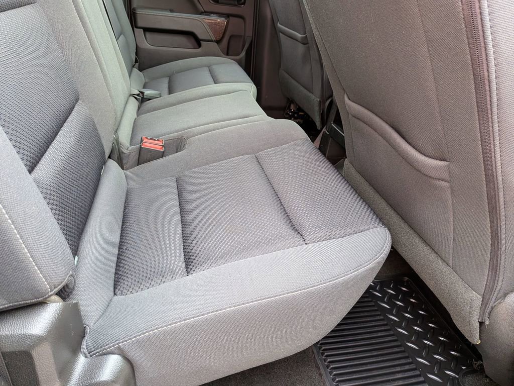 This Sierra 1500 SLE is nicely equipped with Preferred Equipment Group 3SA (150 Amp Alternator, 2-Speed Active Electronic AutoTrac Transfer Case, 4.2 Diagonal Color Display Driver Info Center, Body Color Bodyside Moldings, Body Color Door Handles, Body Color Power Adjustable Heated Outside Mirrors, Body-Color Mirror Caps, Color-Keyed Carpeting, Deep-Tinted Glass, Driver & Front Passenger Illuminated Vanity Mirrors, EZ Lift & Lower Tailgate, Front Frame-Mounted Black Recovery Hooks, GMC 4G LTE, GMC Connected Access, Heavy-Duty Rear Locking Differential, Leather Wrapped Steering Wheel w/Cruise Controls, LED Cargo Box Lighting, OnStar & GMC Connected Services Capable, Power Windows w/Driver Express Up & Down, Rear 60/40 Folding Bench Seat (Folds Up), Rear Wheelhouse Liners, Remote Keyless Entry, Remote Locking Tailgate, Rubberized-Vinyl Front Floor Mats, Rubberized-Vinyl Rear Floor Mats, Single Slot CD/MP3 Player, Single-Zone Air Conditioning, and Steering Wheel Audio Controls), SLE Convenience Package (Power Adjustable Pedals, Power Sliding Rear Window w/Defogger, and Ultrasonic Rear Park Assist), SLE Value Package (10-Way Power Driver's Seat Adjuster, 110-Volt AC Power Outlet, Dual-Zone Automatic Climate Control, Electric Rear-Window Defogger, Remote Vehicle Starter System, Theft Deterrent System (Unauthorized Entry), Thin Profile LED Fog Lamps, and Universal Home Remote), Trailering Equipment, 6-Speed Automatic Electronic with Overdrive, 4WD, Jet Black Cloth, 3.42 Rear Axle Ratio, 4-Wheel Disc Brakes, 40/20/40 Front Split Bench Seat, 6 Speakers, 6-Speaker Audio System, ABS brakes, Air Conditioning, Alloy wheels, AM/FM radio: SiriusXM, Auxiliary External Transmission Oil Cooler, Bodyside moldings, Brake assist, Bumpers: chrome, CD player, Cloth Seat Trim, Compass, Delay-off headlights, Driver door bin, Driver vanity mirror, Dual front impact airbags, Dual front side impact airbags, Electronic Stability Control, Exterior Parking Camera Rear, Front anti-roll bar, Front Center Armrest w/Storage, Front reading lights, Front wheel independent suspension, Fully automatic headlights, HD Radio, Heated door mirrors, Heavy Duty Suspension, High-Intensity Discharge Headlights, Illuminated entry, Integrated Trailer Brake Controller, Low tire pressure warning, Manual Tilt/Telescoping Steering Column, Occupant sensing airbag, Outside temperature display, Overhead airbag, Overhead console, Panic alarm, Passenger door bin, Passenger vanity mirror, Power door mirrors, Power steering, Power windows, Premium audio system: GMC Infotainment System, Radio data system, Radio: AM/FM/GMC Infotainment System, Rear reading lights, Rear step bumper, Remote keyless entry, SiriusXM Satellite Radio, Speed control, Speed-sensing steering, Split folding rear seat, Steering wheel mounted audio controls, Tachometer, Tilt steering wheel, Traction control, Trip computer, Variably intermittent wipers, Voltmeter, and Wheels: 17 x 8 Bright Machined Aluminum.