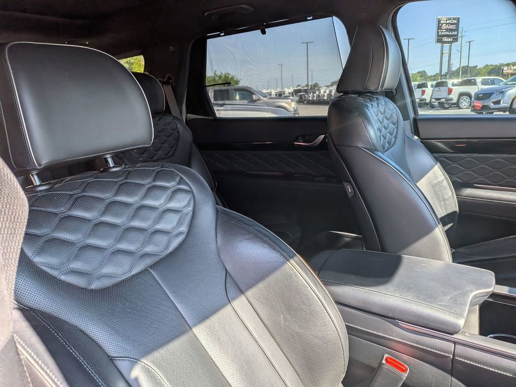 This Palisade Limited is nicely equipped with Option Group 01, 12 Speakers, 3.648 Axle Ratio, 3rd row seats: split-bench, 4-Wheel Disc Brakes, ABS brakes, Air Conditioning, Alloy wheels, AM/FM radio: SiriusXM, Apple CarPlay & Android Auto, Auto High-beam Headlights, Auto-dimming Rear-View mirror, Auto-leveling suspension, Automatic temperature control, Brake assist, Bumpers: body-color, Cargo Cover/Screen, Cargo Net, Carpeted Floor Mats, Compass, Delay-off headlights, Driver door bin, Driver vanity mirror, Dual front impact airbags, Dual front side impact airbags, Electronic Stability Control, Emergency communication system, Four wheel independent suspension, Front anti-roll bar, Front Bucket Seats, Front Center Armrest, Front dual zone A/C, Front reading lights, Fully automatic headlights, Garage door transmitter: HomeLink, harman/kardon® Speakers, Heads-Up Display, Heated & Ventilated Front Bucket Seats, Heated door mirrors, Heated front seats, Heated rear seats, Heated steering wheel, Illuminated entry, Knee airbag, Low tire pressure warning, Memory seat, Navigation System, Occupant sensing airbag, Outside temperature display, Overhead airbag, Overhead console, Panic alarm, Passenger door bin, Passenger vanity mirror, Power door mirrors, Power driver seat, Power Liftgate, Power moonroof, Power passenger seat, Power steering, Power windows, Premium Nappa Leather Seat Trim, Radio data system, Radio: AM/FM/MP3 Premium Audio System, Rain sensing wipers, Rear air conditioning, Rear anti-roll bar, Rear window defroster, Rear window wiper, Reclining 3rd row seat, Remote keyless entry, Security system, Speed control, Speed-sensing steering, Split folding rear seat, Spoiler, Steering wheel mounted audio controls, Tachometer, Telescoping steering wheel, Tilt steering wheel, Tow Hitch, Traction control, Trip computer, Turn signal indicator mirrors, Variably intermittent wipers, Ventilated front seats, Ventilated rear seats, and Wheels: 20 x 7.5J 14-Spoke Premium Finish Alloy. 19/26 City/Highway MPG