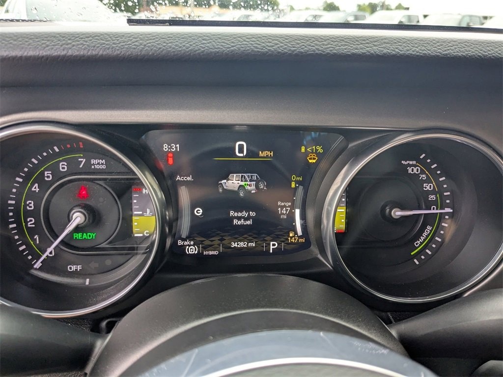 This Wrangler Rubicon 4xe is nicely equipped with Wrangler Rubicon 4xe, 4D Sport Utility, 2.0L I4 DOHC, 8-Speed Automatic, 4WD, Bright White Clearcoat, Black Cloth, ABS brakes, Alloy wheels, Compass, Electronic Stability Control, Front dual zone A/C, Heated door mirrors, Illuminated entry, Low tire pressure warning, Navigation System, ParkView Rear Back-Up Camera, Passenger door bin, Remote keyless entry, Traction control, 4-Wheel Disc Brakes, 4.10 Rear Axle Ratio, 9 Speakers, Air Conditioning, AM/FM radio: SiriusXM, Apple CarPlay/Android Auto, Auto-dimming Rear-View mirror, Automatic temperature control, Brake assist, Delay-off headlights, Driver door bin, Driver vanity mirror, Dual front impact airbags, Dual front side impact airbags, Emergency communication system: SiriusXM Guardian, Front anti-roll bar, Front Bucket Seats, Front Center Armrest w/Storage, Front fog lights, Front reading lights, Fully automatic headlights, Garage door transmitter, Integrated roll-over protection, Occupant sensing airbag, Outside temperature display, Panic alarm, Passenger vanity mirror, Performance Suspension, Power door mirrors, Power steering, Power windows, Premium Cloth Low-Back Bucket Seats, Radio data system, Radio: Uconnect 4C Nav w/8.4 Display, Rear anti-roll bar, Rear reading lights, Security system, Speed control, Split folding rear seat, Steering wheel mounted audio controls, Tachometer, Telescoping steering wheel, Tilt steering wheel, Trip computer, Variably intermittent wipers, Voltmeter, and Wheels: 17 x 7.5 Machined w/Black Pockets. Odometer is 1003 miles below market average!