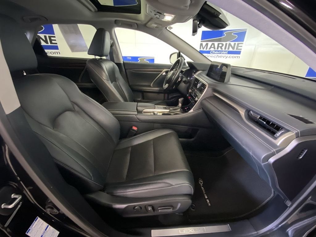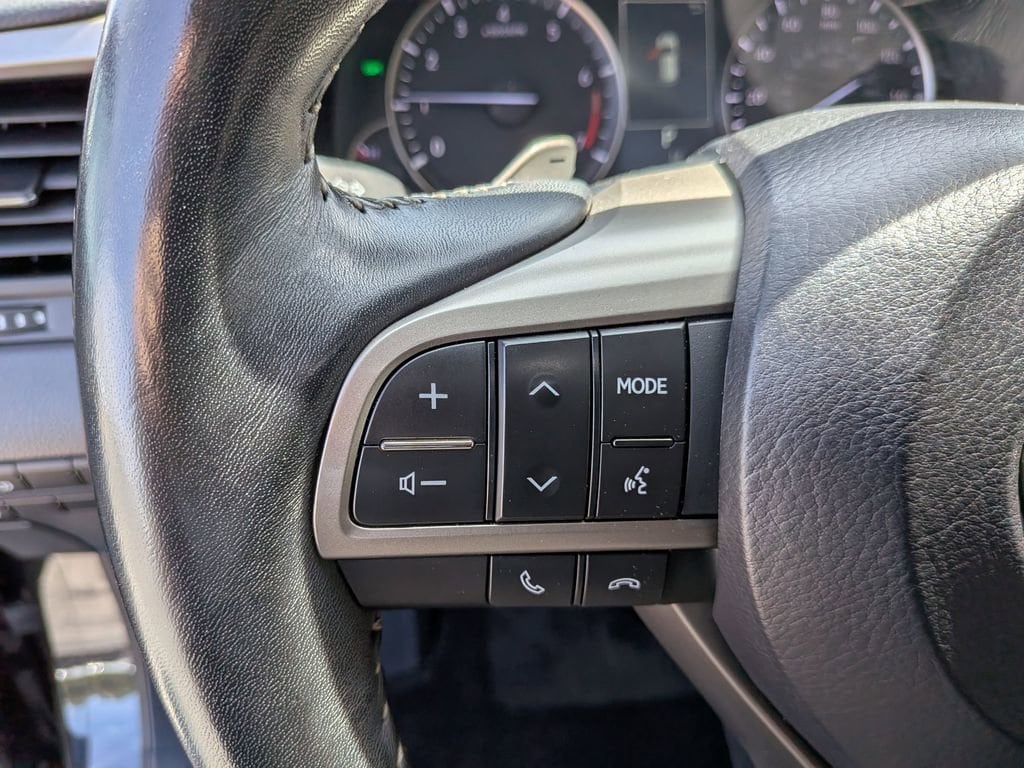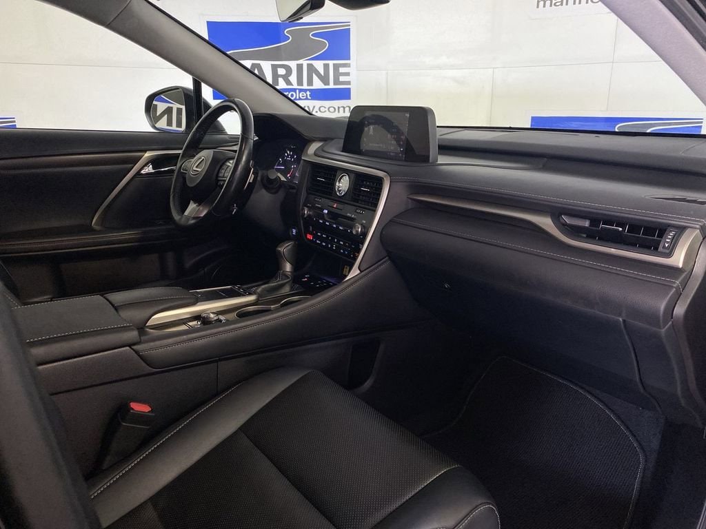 This RX 350 is nicely equipped with RX 350, 4D Sport Utility, 3.5L V6 DOHC 24V, 8-Speed Automatic, AWD, Obsidian, Black w/NuLuxe Seat Trim, 18 Aluminum Wheels, 3.329 Axle Ratio, 4-Wheel Disc Brakes, 9 Speakers, ABS brakes, Air Conditioning, Alloy wheels, AM/FM radio: SiriusXM, AM/FM/CD Radio, Anti-whiplash front head restraints, Apple CarPlay/Android Auto, Auto High-beam Headlights, Auto-dimming Rear-View mirror, Automatic temperature control, Brake assist, Bumpers: body-color, CD player, Compass, Delay-off headlights, Driver door bin, Driver vanity mirror, Dual front impact airbags, Dual front side impact airbags, Electronic Stability Control, Emergency communication system, Exterior Parking Camera Rear, Four wheel independent suspension, Front anti-roll bar, Front Bucket Seats, Front Center Armrest, Front dual zone A/C, Front reading lights, Fully automatic headlights, Garage door transmitter: HomeLink, Genuine wood console insert, Genuine wood door panel insert, Heated door mirrors, Illuminated entry, Knee airbag, Leather Shift Knob, Leather steering wheel, Low tire pressure warning, NuLuxe Seat Trim, Occupant sensing airbag, Outside temperature display, Overhead airbag, Overhead console, Panic alarm, Passenger door bin, Passenger vanity mirror, Power door mirrors, Power driver seat, Power Liftgate, Power passenger seat, Power steering, Power windows, Radio data system, Rain sensing wipers, Rear anti-roll bar, Rear reading lights, Rear seat center armrest, Rear side impact airbag, Rear window defroster, Rear window wiper, Remote keyless entry, Security system, Speed control, Speed-sensing steering, Split folding rear seat, Spoiler, Steering wheel mounted audio controls, Tachometer, Telescoping steering wheel, Tilt steering wheel, Traction control, Trip computer, Turn signal indicator mirrors, and Variably intermittent wipers. Recent Arrival! Odometer is 2106 miles below market average! 19/26 City/Highway MPG