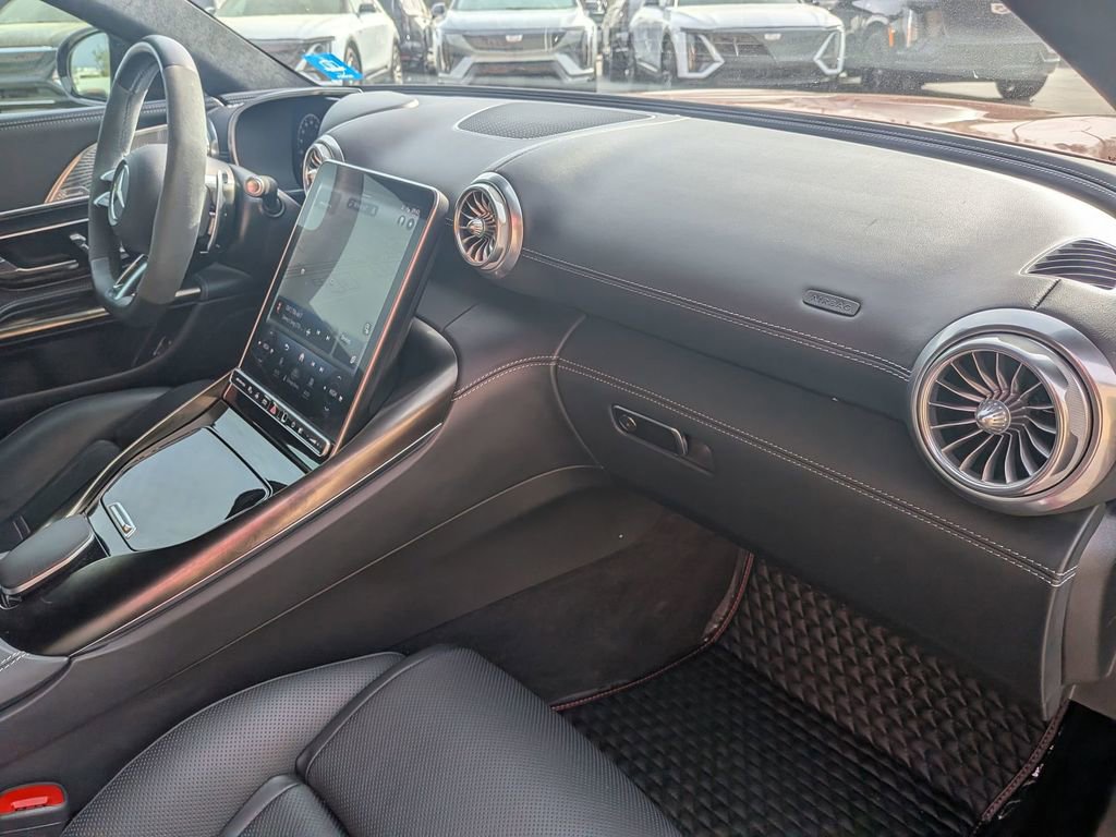 This SL 55 AMG® is nicely equipped with SL 55 AMG® 4MATIC®, 2D Convertible, 4.0L V8, 9-Speed Automatic, 4MATIC®, Red, Brown Leather, 11 Speakers, 20 AMG® Twin 5-Spoke Wheels, 4-Wheel Disc Brakes, ABS brakes, Adaptive suspension, Air Conditioning, Alloy wheels, Android Auto®, Apple CarPlay®, Apple CarPlay®/Android Auto®, Auto High-beam Headlights, Auto tilt-away steering wheel, Auto-dimming door mirrors, Auto-dimming Rear-View mirror, Automatic temperature control, Bluetooth® Connectivity, Brake assist, Bumpers: body-color, Burmester® Surround Sound System, Child-Seat-Sensing Airbag, Convertible roof lining, Convertible roof wind blocker, Delay-off headlights, Driver door bin, Driver vanity mirror, Dual front impact airbags, Dual front side impact airbags, Electronic Stability Control, Emergency communication system, Exterior Parking Camera Rear, Four wheel independent suspension, Front anti-roll bar, Front Bucket Seats, Front Center Armrest, Front dual zone A/C, Front reading lights, Garage door transmitter: HomeLink, Glass rear window, Heated front seats, Heated steering wheel, Illuminated entry, Integrated roll-over protection, Knee airbag, Leather steering wheel, Low tire pressure warning, Memory seat, Nappa Leather Upholstery, Navigation System, Occupant sensing airbag, Outside temperature display, Overhead airbag, Overhead console, Panic alarm, Passenger door bin, Passenger vanity mirror, Power convertible roof, Power door mirrors, Power driver seat, Power Front Seats w/3-Position Memory, Power passenger seat, Power steering, Power windows, Radio data system, Radio: MBUX Infotainment & Navigation System, Rain sensing wipers, Rear anti-roll bar, Rear fog lights, Rear window defroster, Remote keyless entry, Security system, SiriusXM Radio, Smartphone Integration, Speed control, Speed-sensing steering, Spoiler, Sport steering wheel, Steering wheel memory, Steering wheel mounted audio controls, Tachometer, Telescoping steering wheel, Tilt steering wheel, Touring Trim Line, Traction control, Trip computer, Turn signal indicator mirrors, Variably intermittent wipers, and Ventilated front seats. Recent Arrival!