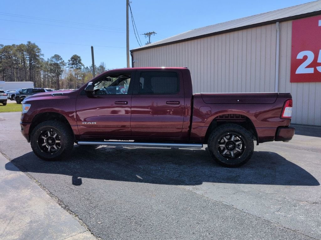 Delmonico Red Pearlcoat 2019 Ram 1500 Big Horn/Lone Star 4WD 8-Speed Automatic HEMI 5.7L V8 Multi Displacement VVT 1500 Big Horn/Lone Star, 4D Crew Cab, HEMI 5.7L V8 Multi Displacement VVT, 8-Speed Automatic, 4WD, Delmonico Red Pearlcoat, Black Cloth.This 1500 Big Horn/Lone Star is nicely equipped with Big Horn Level 1 Equipment Group (Single Disc Remote CD Player and SiriusXM Satellite Radio), Protection Group (Tow Hooks), Quick Order Package 25Z Big Horn/Lone Star, Sport Appearance Package (3 Rear Seat Head Restraints, 4 Way Front Headrests, Deluxe Cloth Bucket Seats, Exterior Mirrors Courtesy Lamps, Exterior Mirrors w/Supplemental Signals, Front Seat Back Map Pockets, and Rear 60/40 Folding Seat), Trailer Tow Group (Add Class IV Receiver Hitch, Power Black Trailer Tow Mirrors, Trailer Brake Control, and Trailer Tow Mirrors), 1500 Big Horn/Lone Star, 4D Crew Cab, HEMI 5.7L V8 Multi Displacement VVT, 8-Speed Automatic, 4WD, Delmonico Red Pearlcoat, Black Cloth, 1-Year SiriusXM Radio Service, 1-Yr SiriusXM Guardian Trial, 3.21 Rear Axle Ratio, 33 Gallon Fuel Tank, 4-Wheel Disc Brakes, 400W Inverter, 48V Belt Starter Generator, 5-Year SiriusXM Traffic Service, 5-Year SiriusXM Travel Link Service, 6 Speakers, 8.4 Touchscreen Display, ABS brakes, Air Conditioning, Air Conditioning ATC w/Dual Zone Control, Alloy wheels, AM/FM radio, Anti-Spin Differential Rear Axle, Apple CarPlay, Brake assist, Bumpers: chrome, Cloth Bench Seat, Compass, Delay-off headlights, Disassociated Touchscreen Display, Driver door bin, Dual front impact airbags, Dual front side impact airbags, Electronic Stability Control, For Details, Visit DriveUconnect.com, For More Info, Call 800-643-2112, Front & Rear Rubber Floor Mats, Front anti-roll bar, Front Center Armrest w/Storage, Front fog lights, Front reading lights, Front wheel independent suspension, Fully automatic headlights, Google Android Auto, GPS Antenna Input, GPS Navigation, HD Radio, Heated door mirrors, Illuminated entry, Integrated Center Stack Radio, Leather steering wheel, Low tire pressure warning, No Satellite Coverage w/HI/AK/PR/VI/GU, Occupant sensing airbag, Outside temperature display, Overhead airbag, Overhead console, Panic alarm, ParkSense Front/Rear Park Assist w/Stop, ParkView Rear Back-Up Camera, Passenger door bin, Passenger vanity mirror, Power door mirrors, Power steering, Power windows, Radio data system, Radio: Uconnect 3 w/5 Display, Radio: Uconnect 4C Nav w/8.4 Display, RamBox Cargo Management System, Rear anti-roll bar, Rear seat center armrest, Rear step bumper, Rear Underseat Compartment Storage, Remote keyless entry, Remote Start System, SiriusXM Traffic Plus, SiriusXM Travel Link, Speed control, Split folding rear seat, Tachometer, Telescoping steering wheel, Tilt steering wheel, Traction control, Trip computer, Variably intermittent wipers, Voltmeter, Wheel to Wheel Side Steps, Wheels: 18 x 8, and Wheels: 20 x 9 Aluminum Chrome ClaD. Recent Arrival! Odometer is 653 miles below market average!Give us a call at 252-497-8653 to schedule your test drive and let us give you the edge!Awards:* Motor Trend Automobiles of the year * 2019 KBB.com 10 Best Road Trip Cars * NACTOY 2019 North American Truck of the Year * 2019 KBB.com 10 Favorite New-for-2019 Cars * 2019 KBB.com Best Auto Tech Awards