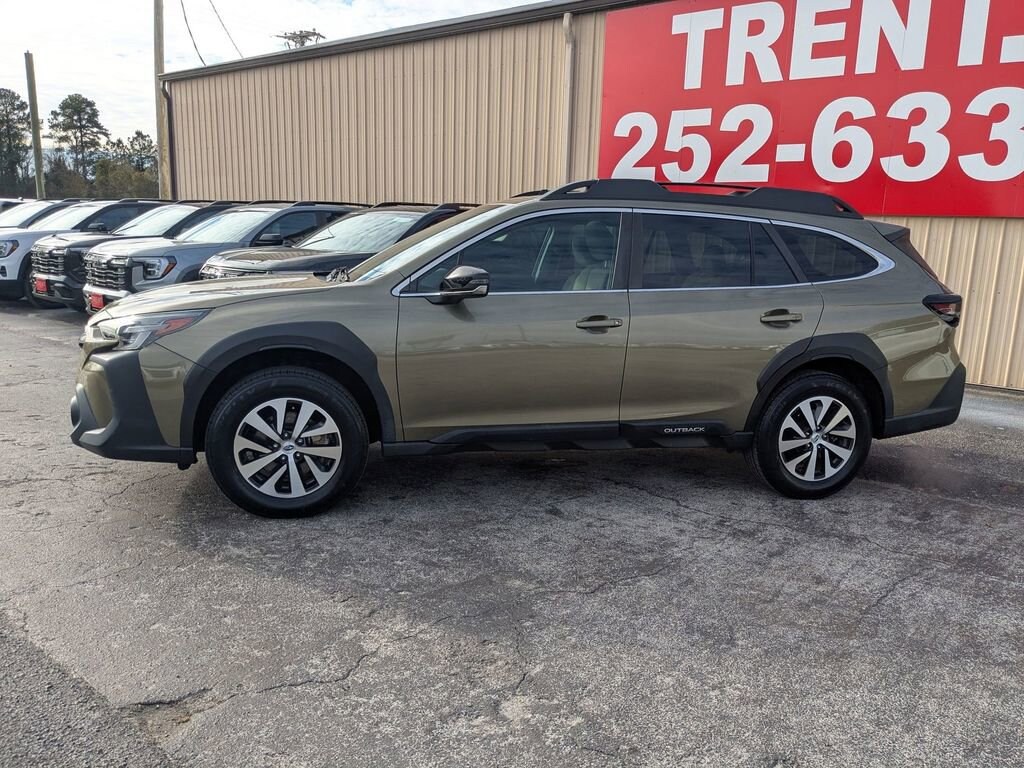 Priced below KBB Fair Purchase Price!Clean CARFAX. Green Metallic 2023 Subaru Outback Premium AWD CVT Lineartronic 2.5L 4-Cylinder DOHC 16V Outback Premium, 4D Sport Utility, 2.5L 4-Cylinder DOHC 16V, CVT Lineartronic, AWD, Green Metallic, Warm Ivory Cloth.This Outback Premium is nicely equipped with BSD & RCTA & Keyless Access & Push Button Start (Blind Spot Detection (BSD), Hands-Free Power Rear Gate, Keyless Access w/Push Button Start, Power Moonroof, Radio: Subaru STARLINK 11.6 Multimedia Nav System, and Rear Cross Traffic Alert (RCTA)), Outback Premium, 4D Sport Utility, 2.5L 4-Cylinder DOHC 16V, CVT Lineartronic, AWD, Green Metallic, Warm Ivory Cloth, 3.90 Axle Ratio, 4-Wheel Disc Brakes, 6 Speakers, ABS brakes, Air Conditioning, All-Weather Floor Liners, Alloy wheels, AM/FM radio: SiriusXM, Auto High-beam Headlights, Auto-Dimming Mirror w/Compass & HomeLink, Automatic temperature control, Brake assist, Bumpers: body-color, Cloth Upholstery, Driver door bin, Driver vanity mirror, Dual front impact airbags, Dual front side impact airbags, Electronic Stability Control, Emergency communication system: STARLINK Safety Plus (3-year free trial), Exterior Parking Camera Rear, Four wheel independent suspension, Front anti-roll bar, Front Bucket Seats, Front Center Armrest w/Storage, Front dual zone A/C, Front fog lights, Front reading lights, Fully automatic headlights, Heated door mirrors, Heated Front Bucket Seats, Heated front seats, Illuminated entry, Knee airbag, Leather Shift Knob, Leather steering wheel, Low tire pressure warning, Occupant sensing airbag, Outside temperature display, Overhead airbag, Overhead console, Panic alarm, Passenger door bin, Passenger vanity mirror, Power door mirrors, Power driver seat, Power steering, Power windows, Radio: Subaru STARLINK 11.6 Multimedia Plus Sys, Rear anti-roll bar, Rear Seat Back Protector, Rear seat center armrest, Rear window defroster, Rear window wiper, Remote keyless entry, Roof rack, Security system, Speed control, Speed-sensing steering, Split folding rear seat, Spoiler, Steering wheel mounted audio controls, Steering Wheel Paddle Shift Control Switches, Tachometer, Telescoping steering wheel, Tilt steering wheel, Traction control, Trip computer, Turn signal indicator mirrors, Variably intermittent wipers, and Wheels: 17 x 7J Black Aluminum Alloy. Odometer is 25021 miles below market average! 26/32 City/Highway MPGGive us a call at 252-497-8653 to schedule your test drive and let us give you the edge!
