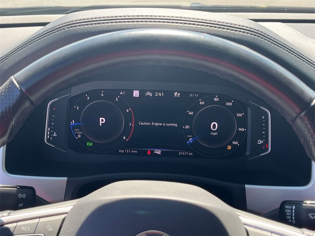 This Atlas 3.6L V6 SEL R-Line is nicely equipped with Atlas 3.6L V6 SEL R-Line, 4D Sport Utility, 3.6L VR6, 8-Speed Automatic with Tiptronic, AWD, Platinum Gray Metallic, Titan Black w/Perforated V-Tex Leatherette Seating Surfaces, 3.60 Axle Ratio, 3rd row seats: split-bench, 4-Wheel Disc Brakes, 6 Speakers, ABS brakes, Air Conditioning, Alloy wheels, AM/FM radio: SiriusXM with 360L, Auto High-beam Headlights, Auto-dimming Rear-View mirror, Automatic temperature control, Brake assist, Bumpers: body-color, Compass, Delay-off headlights, Driver door bin, Driver vanity mirror, Dual front impact airbags, Dual front side impact airbags, Electronic Stability Control, Emergency communication system, Exterior Parking Camera Rear, Four wheel independent suspension, Front anti-roll bar, Front Bucket Seats, Front Center Armrest, Front dual zone A/C, Front fog lights, Front reading lights, Fully automatic headlights, Heated Comfort Front Bucket Seats, Heated door mirrors, Heated front seats, Heated steering wheel, Illuminated entry, Leather Shift Knob, Low tire pressure warning, Memory seat, Navigation System, Occupant sensing airbag, Outside temperature display, Overhead airbag, Overhead console, Panic alarm, Passenger door bin, Passenger vanity mirror, Perforated V-Tex Leatherette Seating Surfaces, Power door mirrors, Power driver seat, Power Liftgate, Power moonroof: Panoramic, Power passenger seat, Power steering, Power windows, Radio data system, Radio: MIB3 Discover Media w/8 Touchscreen Nav, Rain sensing wipers, Rear air conditioning, Rear anti-roll bar, Rear reading lights, Rear seat center armrest, Rear window defroster, Rear window wiper, Remote keyless entry, Roof rack: rails only, Security system, Speed control, Speed-sensing steering, Split folding rear seat, Spoiler, Sport steering wheel, Standard Suspension, Steering wheel mounted audio controls, Tachometer, Telescoping steering wheel, Tilt steering wheel, Traction control, Trip computer, Turn signal indicator mirrors, Variably intermittent wipers, and Wheels: 20 x 8J Twin 5-Spoke Dark Graphite Alloy. Odometer is 10490 miles below market average!